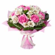 Любимое миллионами сочетание роз и альстромерий получило новое воплощение в букете «Девичья нежность». Красивые цветы нежных розовых и белых цветов смотрятся вместе непередаваемо, такой букет запомнится на всю жизнь. Оформление дополняет гипсофила и аспидистра, делая букет зеленее и приятнее. Цветы подойдут не только любимой, но и друзьям или коллегам.